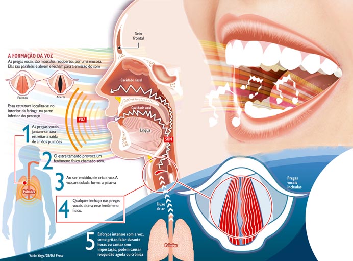 - Se houver necessidade de expelir qualquer coisa, não pigarreiem (ou seja, aquelas tentativas de tirar o 'catarro'), tussam, caso a sensação não passe com água. Pigarrear vai provocar lesões nas cordas vocais, tossir não é bom, mas sempre não provoca tantos danos.
